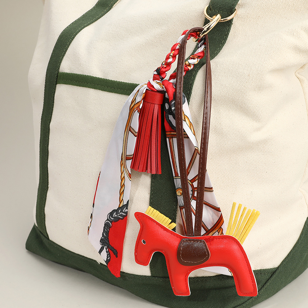 • Elevate your handbag with this adorable charm featuring a stitched horse figure, playful tassel, and patterned scarf detail. A fun, equestrian-inspired accessory that adds charm and personality to any bag.