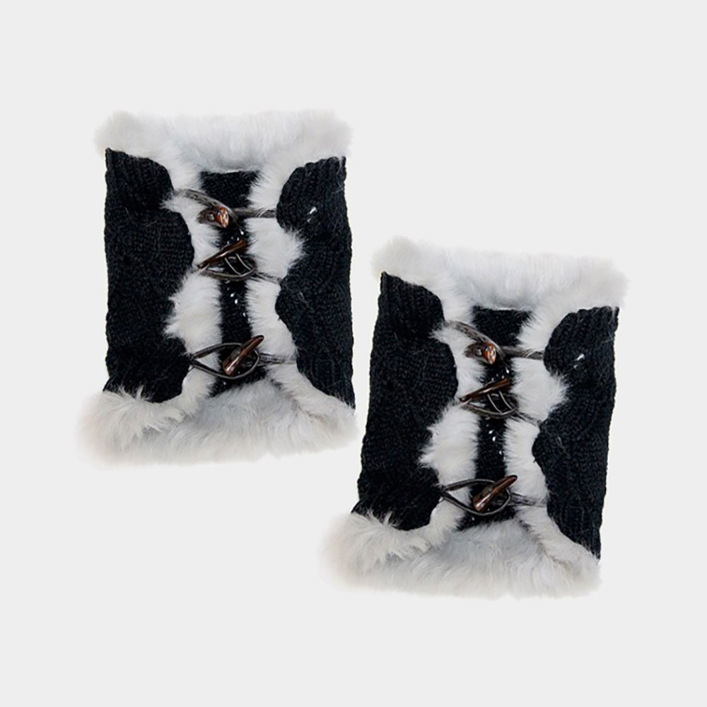 • These faux fur knit boot cuff accessories add a cozy, winter-inspired charm to your favorite boots. Featuring a soft knitted pattern framed by plush faux fur trim and toggle accents, they offer both warmth and elegance—perfect for elevating cold-weather outfits with stylish flair.