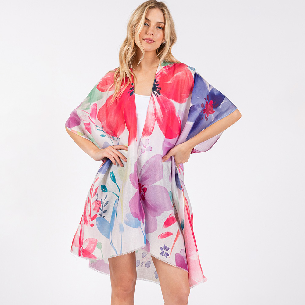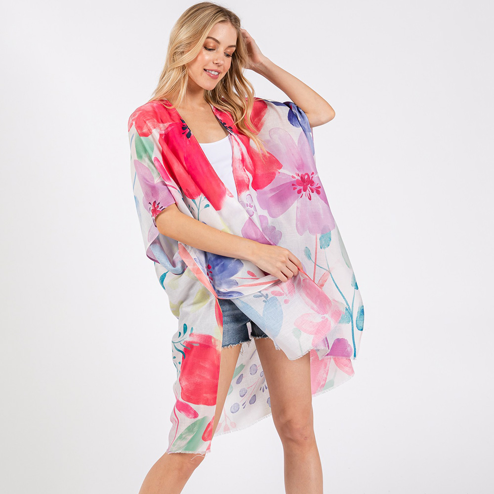 Watercolor Flower Pint Kimono Poncho