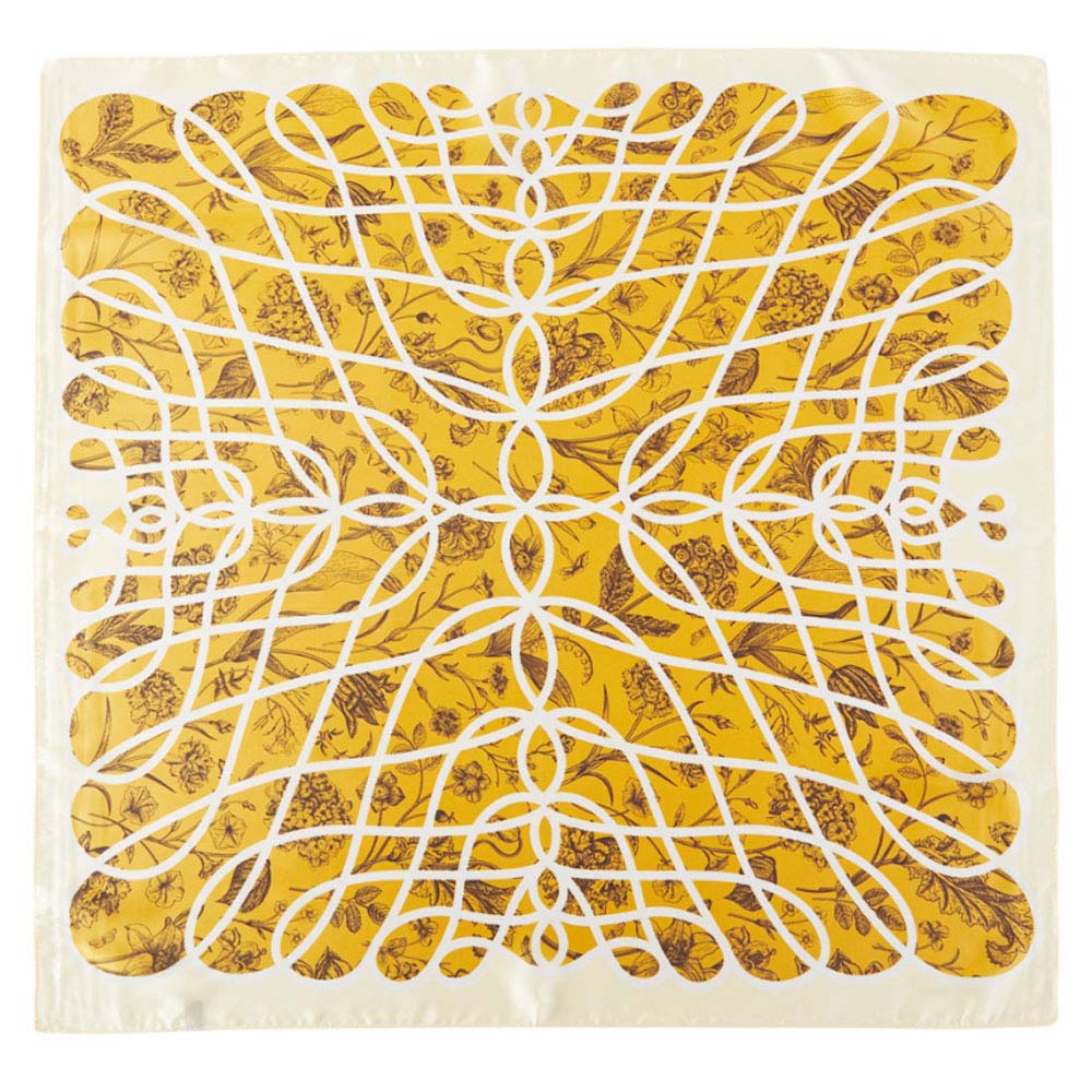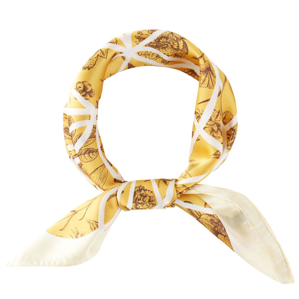 Details • Size : 27.5" X 27.5" • Material : 100% Polyester • This square scarf features an intricate overlay pattern with delicate botanical detailing, bringing a refined and artistic touch to any ensemble. Its lightweight feel makes it perfect for styling around the neck, hair, or handbag, adding a sophisticated accent to everyday and special looks.