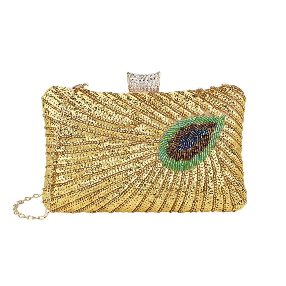 Beaded Sequin Peacock Clutch Evening Bag Crossbody Bag