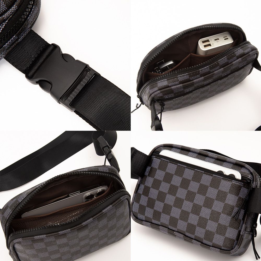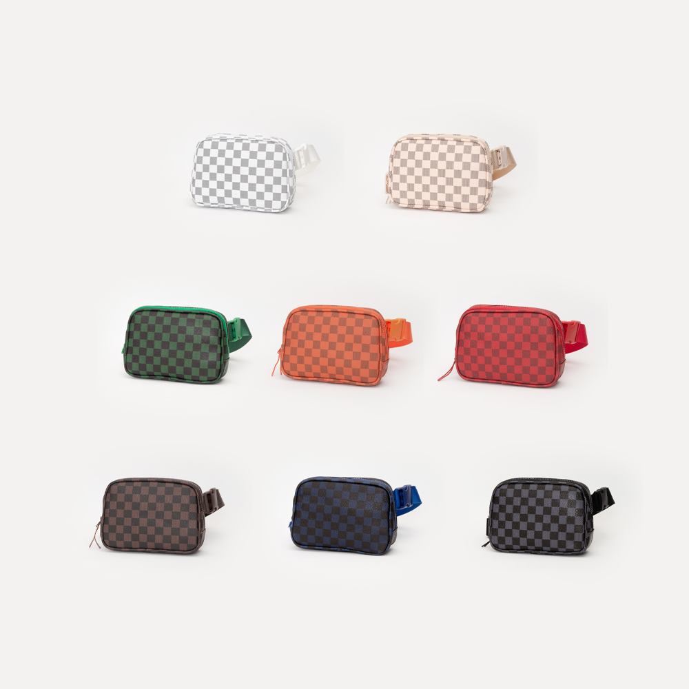 Faux Leather Checkered Pattern Belt Bag / Sling Bag / Fanny Pack
