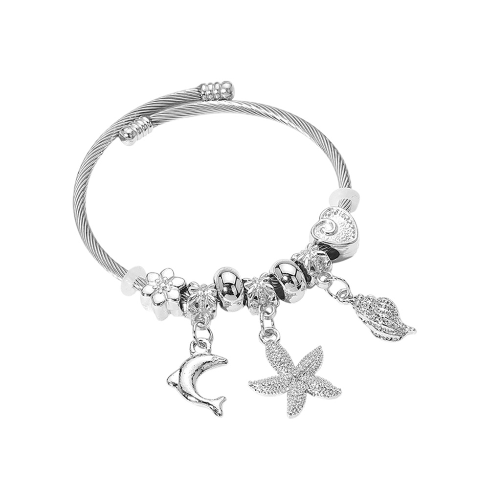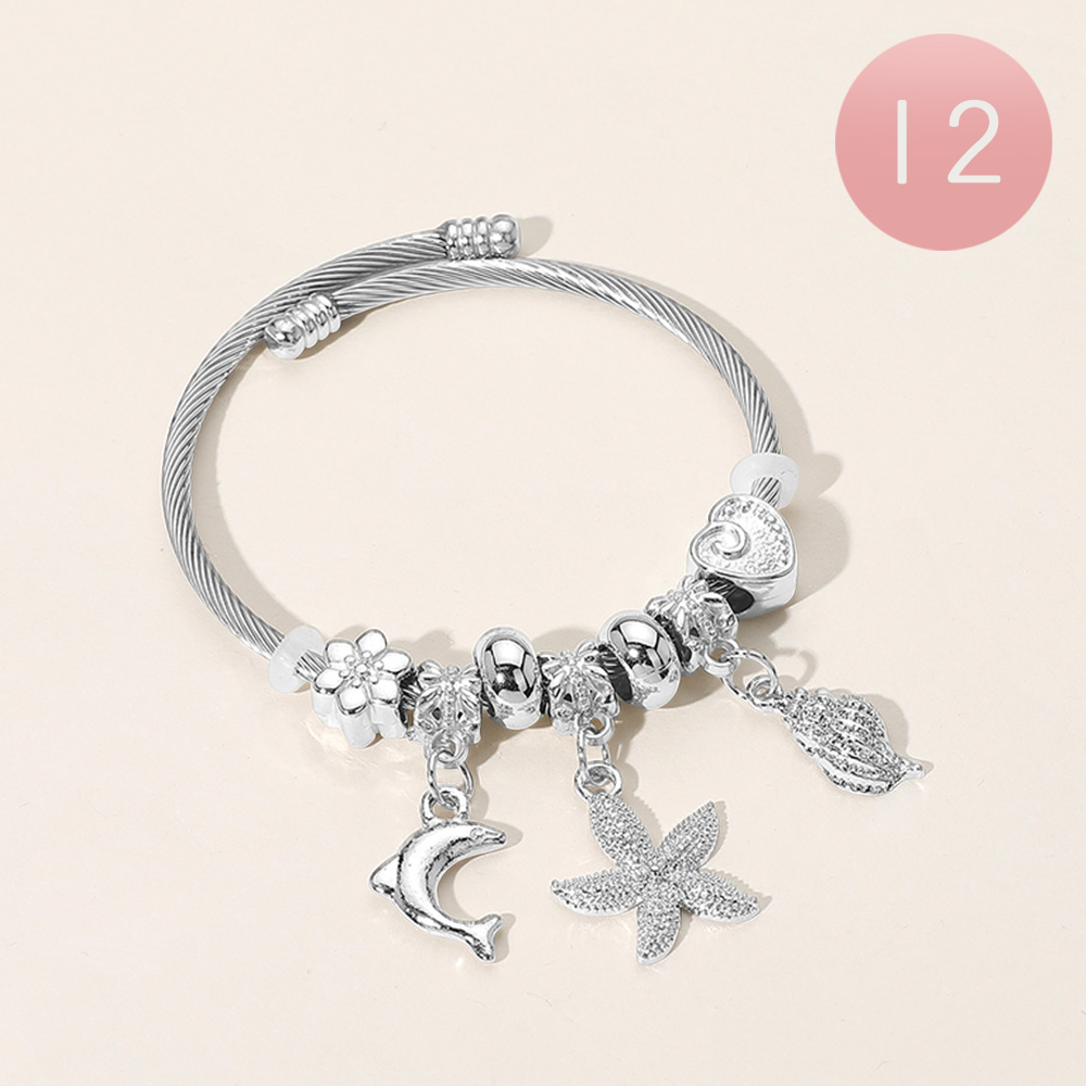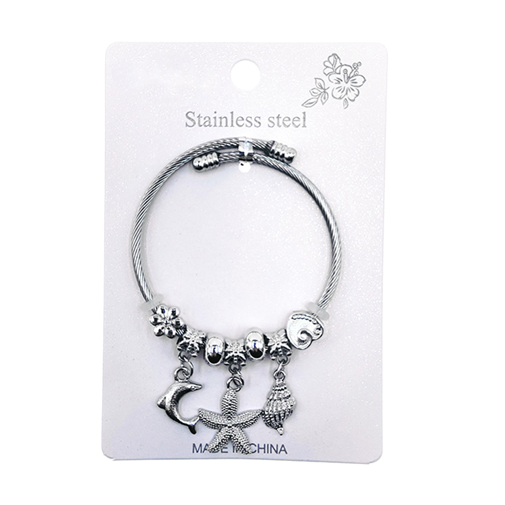 12PCS - Stainless Steel Dolphin Starfish Shell Beaded Adjustable Bracelets