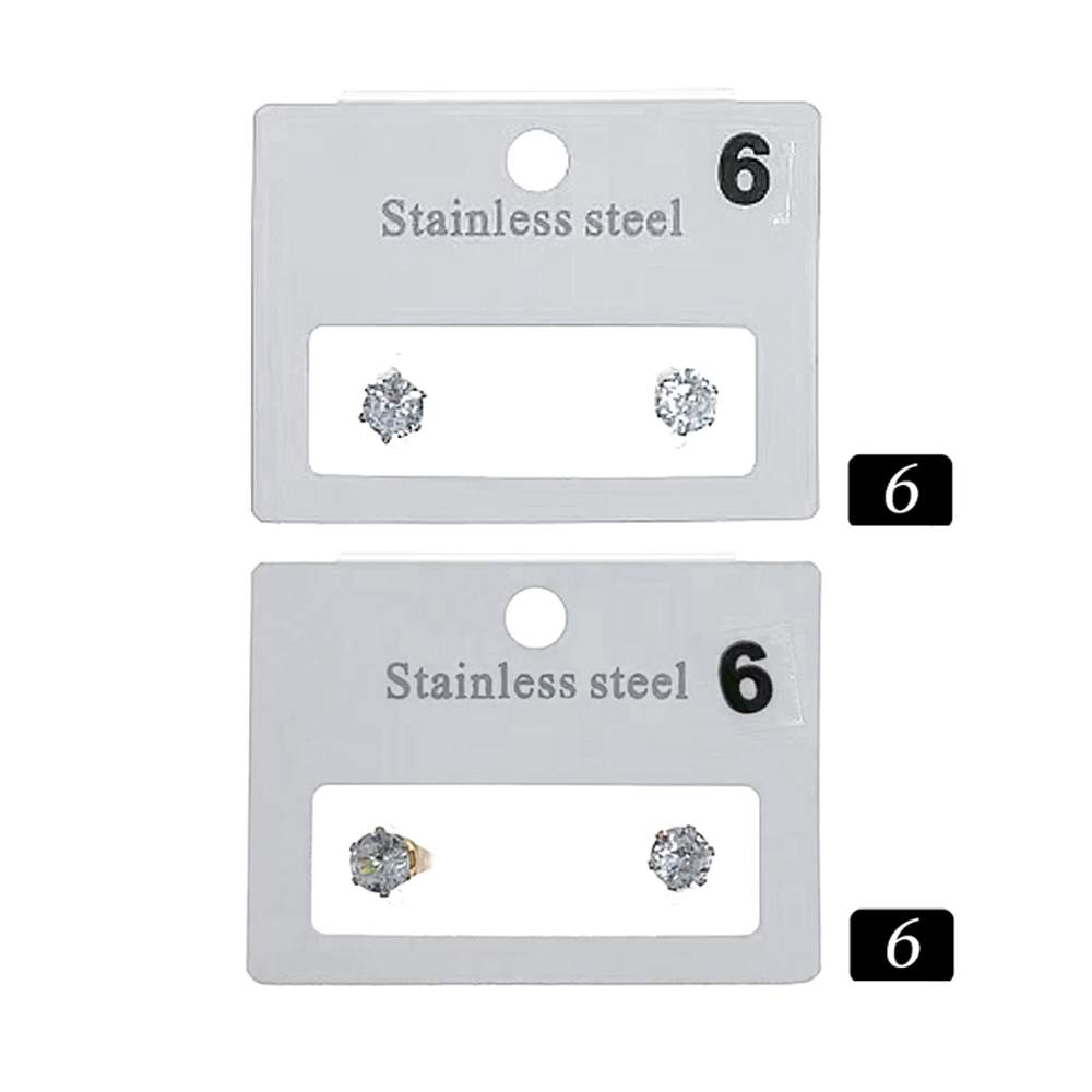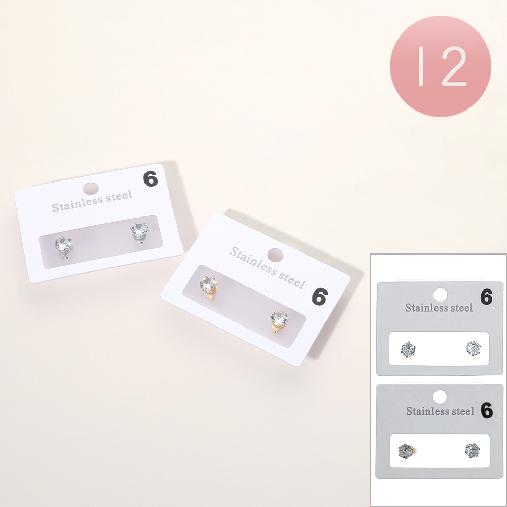 12Pairs - Stainless Steel 0.6mm Round Stone Stud Earrings