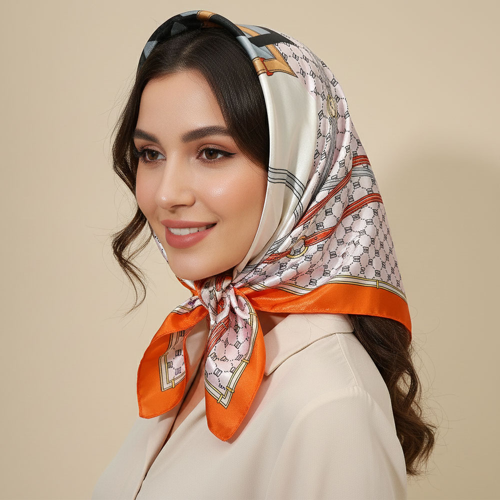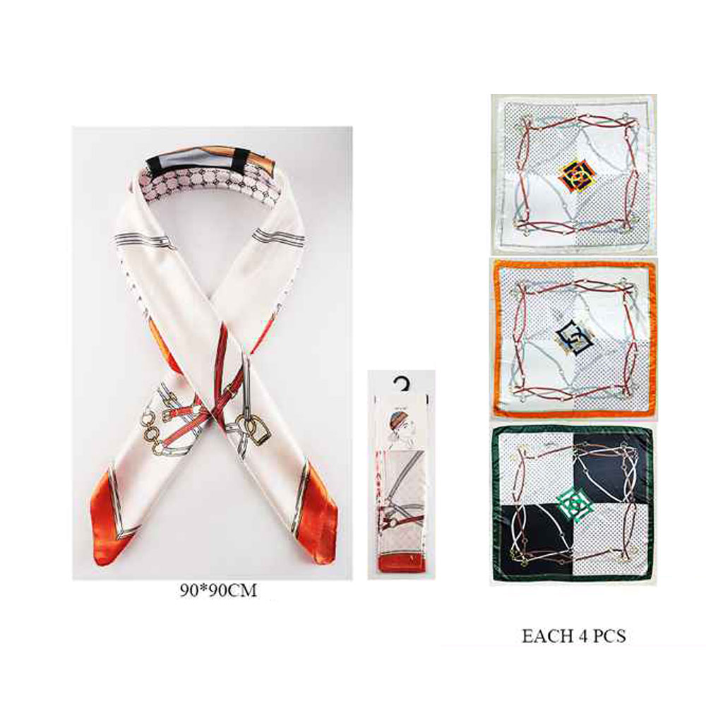 Details • Size : 36" X 36" • Material : 100% Polyester • A chic square scarf showcasing refined patterned detailing for effortless everyday styling. Perfect for wearing at the neck, in the hair, or as a bag accent, this versatile piece adds a polished finish to casual or dressy looks alike.