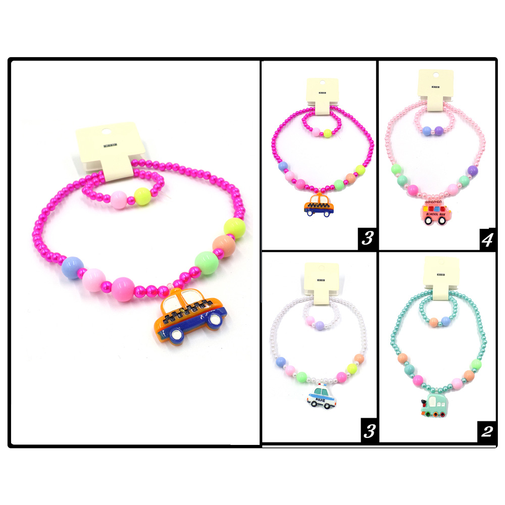Details • Necklace Size : 15" L / Stretchable • Pendant Size : 1.1" L • Bracelet Size : 0.5" H / Stretchable • Charming kids’ jewelry set featuring a playful vehicle charm on a beaded necklace and matching bracelet. This 12-piece pack is ideal for party favors, birthday surprises, or everyday fun, making it a delightful accessory choice for children who love creative and themed jewelry.