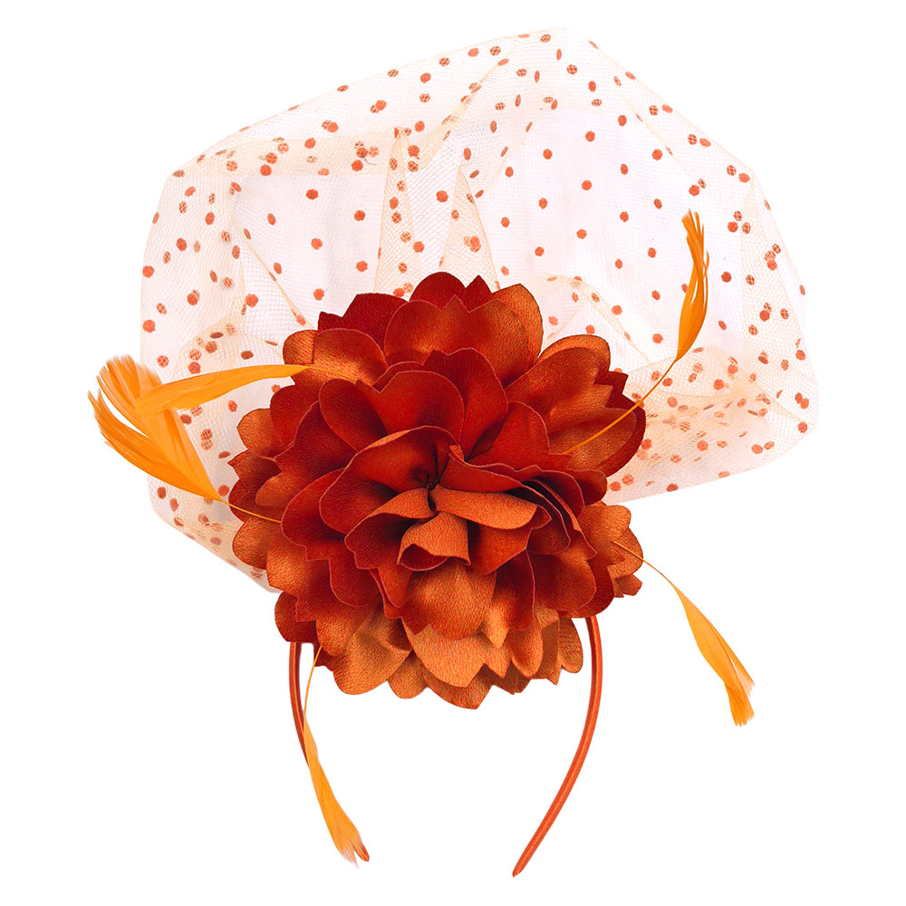 Feather Accent Mesh Floral Fascinator Hair Clip Headband