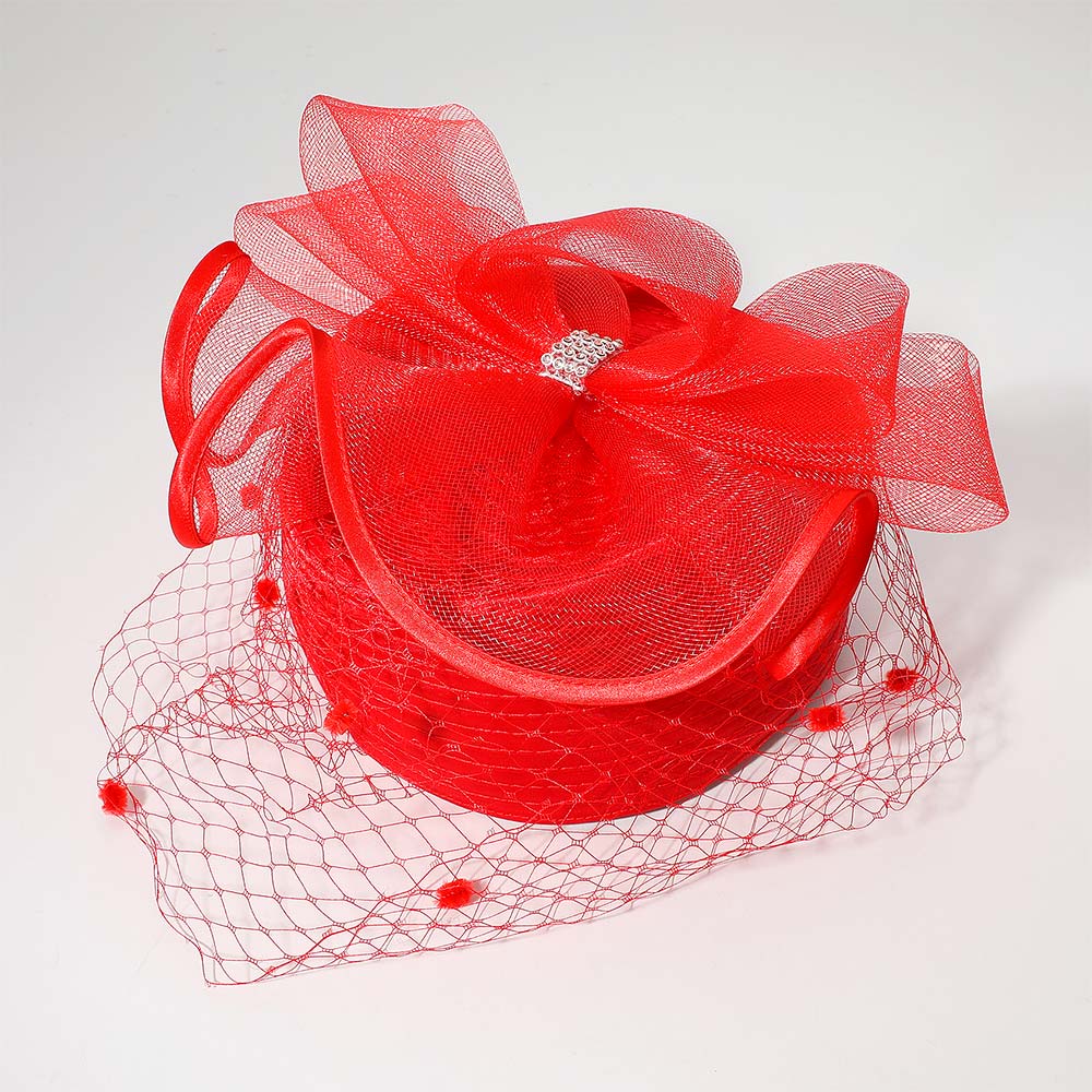 Stone Paved Mesh Bow Pointed Fascinator / Dressy Hat