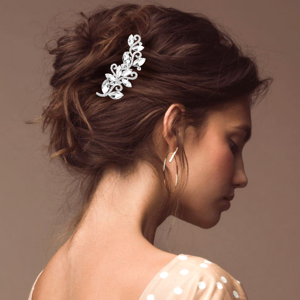 • Elevate your look with this graceful floral swirl hair clip designed to add refined detail to bridal and special occasion hairstyles. Its delicate arrangement enhances updos and soft waves, creating a polished, romantic finish that complements both modern and classic styling.
