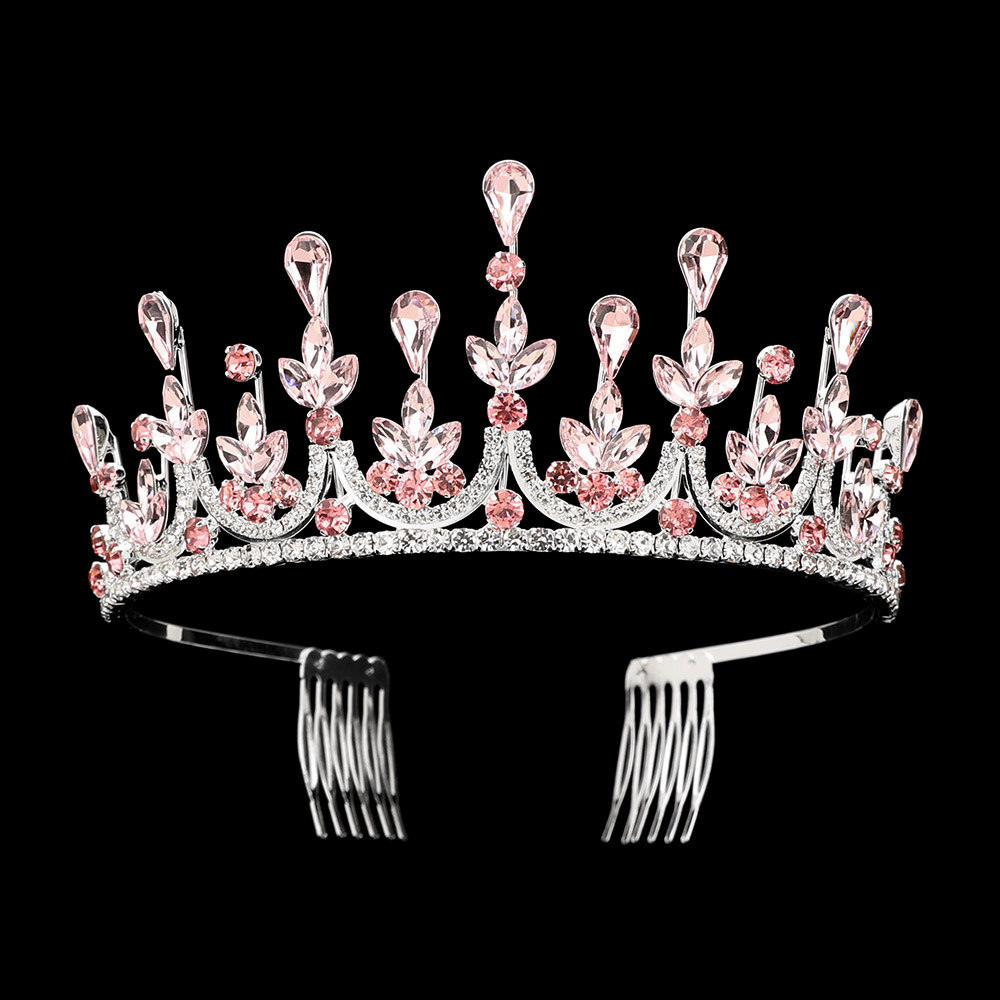 • Elegant crystal tiara featuring sparkling floral motifs, teardrop accents, and a graceful arched silhouette. Includes secure side combs for a comfortable, stable fit. Perfect for weddings, pageants, quinceañeras, proms, and formal events.