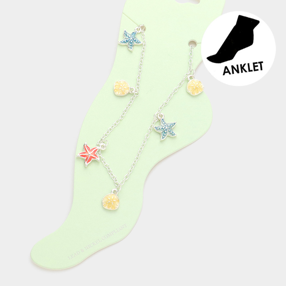 Enamel Starfish Sand Dollar Charm Station Anklet