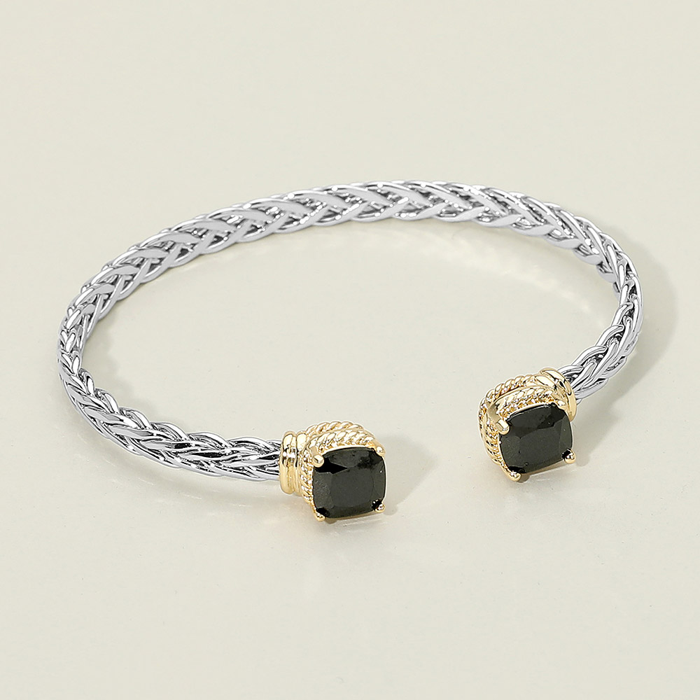 • Refined open cuff bracelet featuring a braided band and square crystal end details. Designed with a structured silhouette and elegant sparkle, this versatile accessory pairs effortlessly with casual or dress looks and layers beautifully with other bracelets for curated styling.