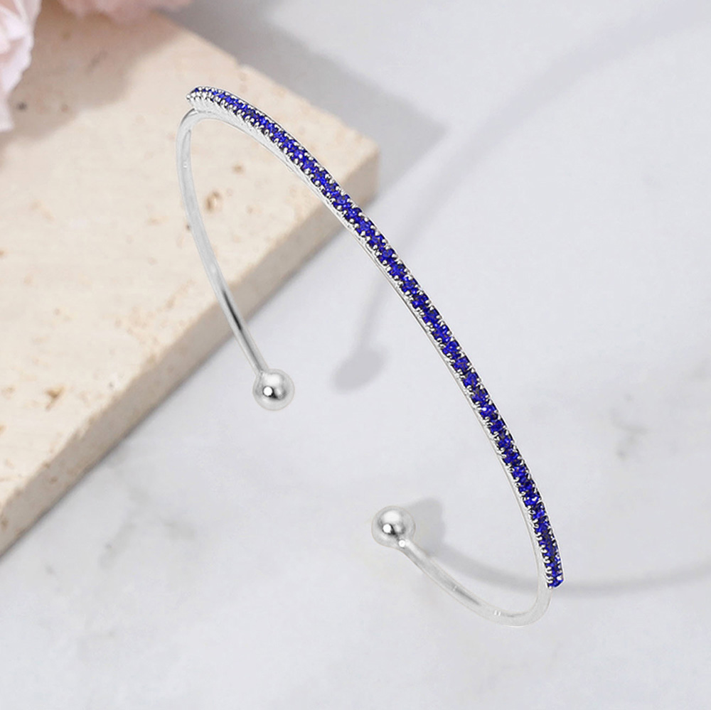 • Sleek and elegant cuff bracelet featuring a slim open bangle design adorned with shimmering cz crystals. Perfect for adding a subtle sparkle to any outfit, ideal for stacking or wearing alone for a refined look.