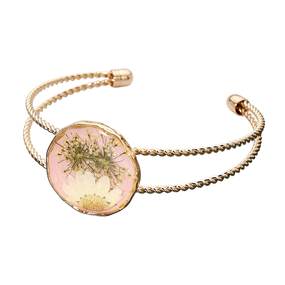 Real Flower Resin Round Center Split Cuff Bracelet Real Flower Resin Round Center Split Cuff Bracelet Real Flower Resin Round Center Split Cuff Bracelet