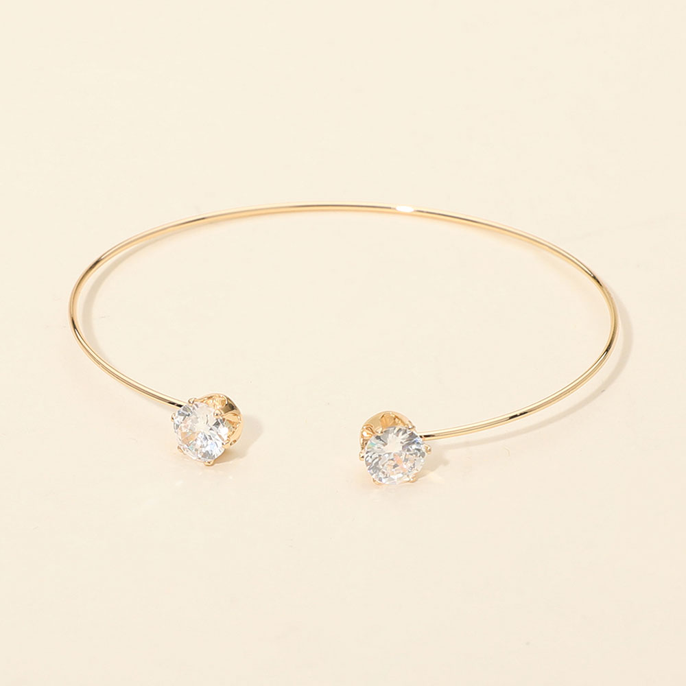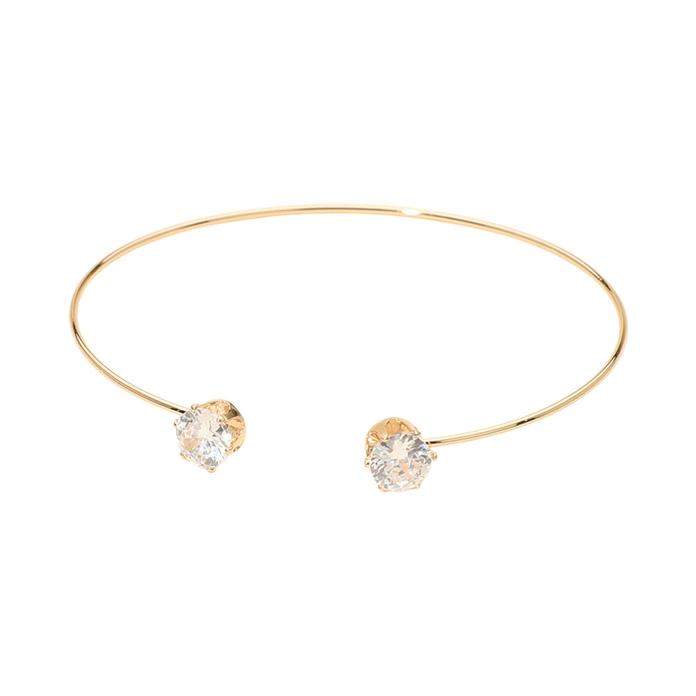 Details • Size : 0.3" H, 2.5" D • Cuff • Minimal open cuff bracelet designed with a sleek silhouette and matching stone accents at each end. This refined style offers an elegant balance of simplicity and sparkle, making it ideal for everyday wear, stacking, gifting, or curated boutique jewelry collections. • Brass