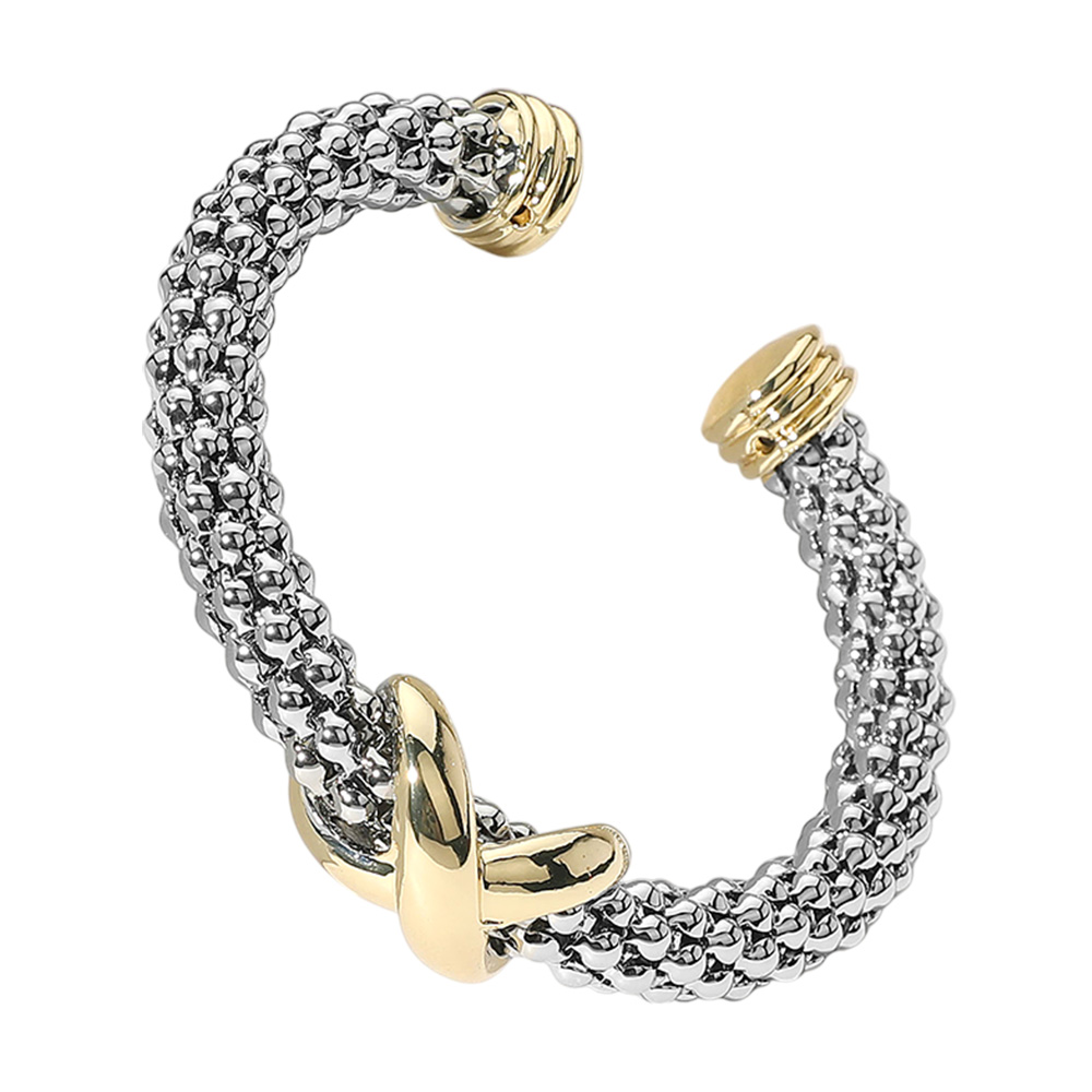 Details • Size : 0.6" H, 2.3" • Cuff • This textured beaded cuff bracelet features a bold, sculptural design that brings modern elegance to everyday style. Its flexible open-cuff structure offers a comfortable fit, while the polished accents add a refined touch that pairs effortlessly with both casual and dressy looks.