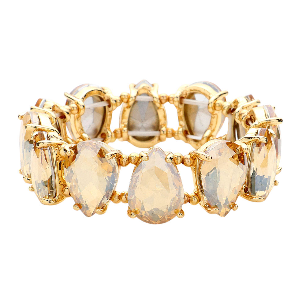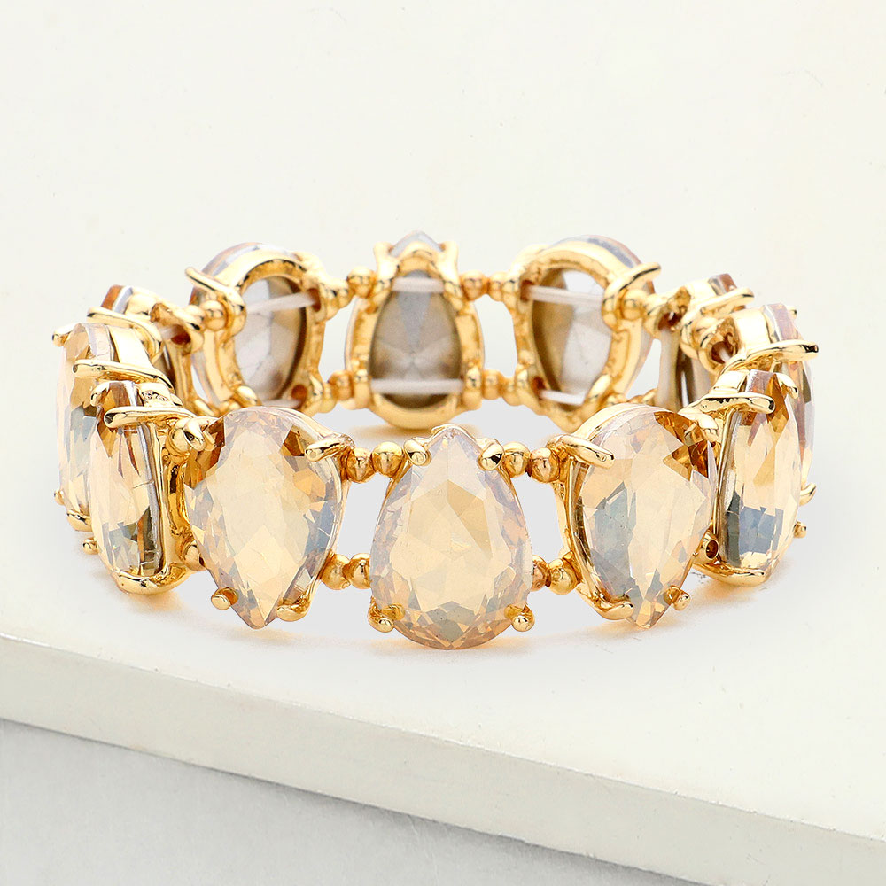 Teardrop Glass Stone Cluster Stretch Evening Bracelet