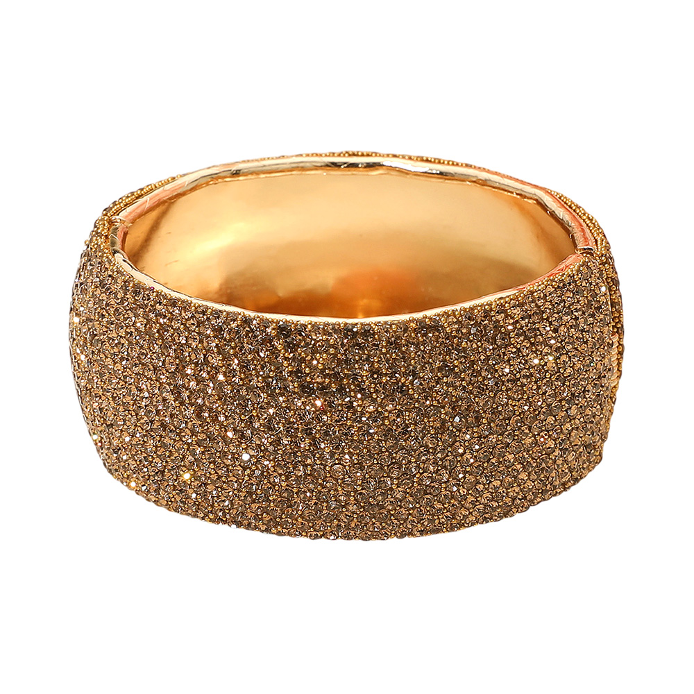 • Elevate your look with this wide crystal pave bracelet featuring a bold, shimmering design. Perfect as a statement bangle for parties, weddings, and special events, this sparkling accessory adds glamour and sophistication to any outfit.
