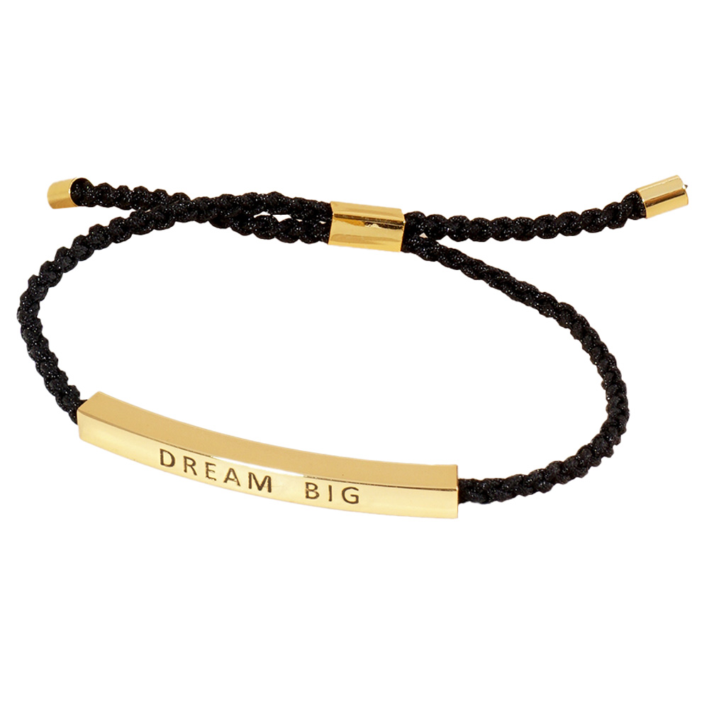 Gold Dipped BRAVE Message Bar Pointed Rope Adjustable Cinch Pull Tie Bracelet