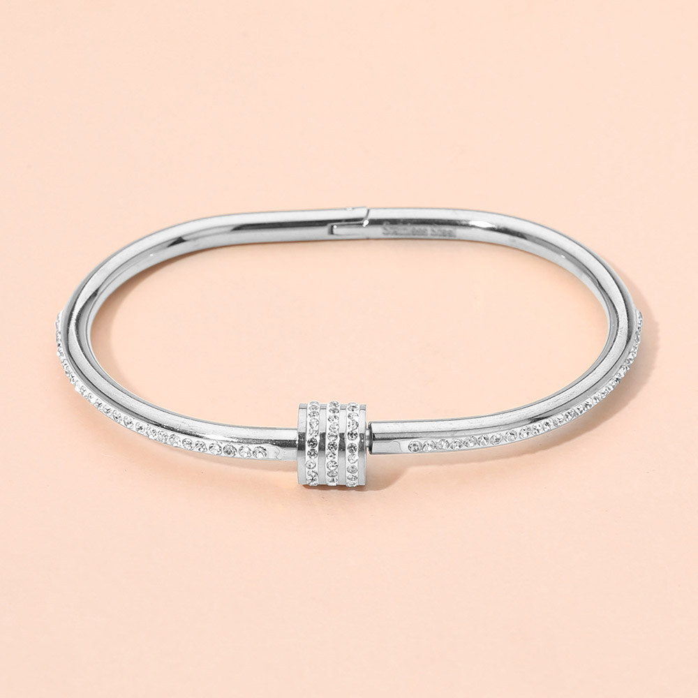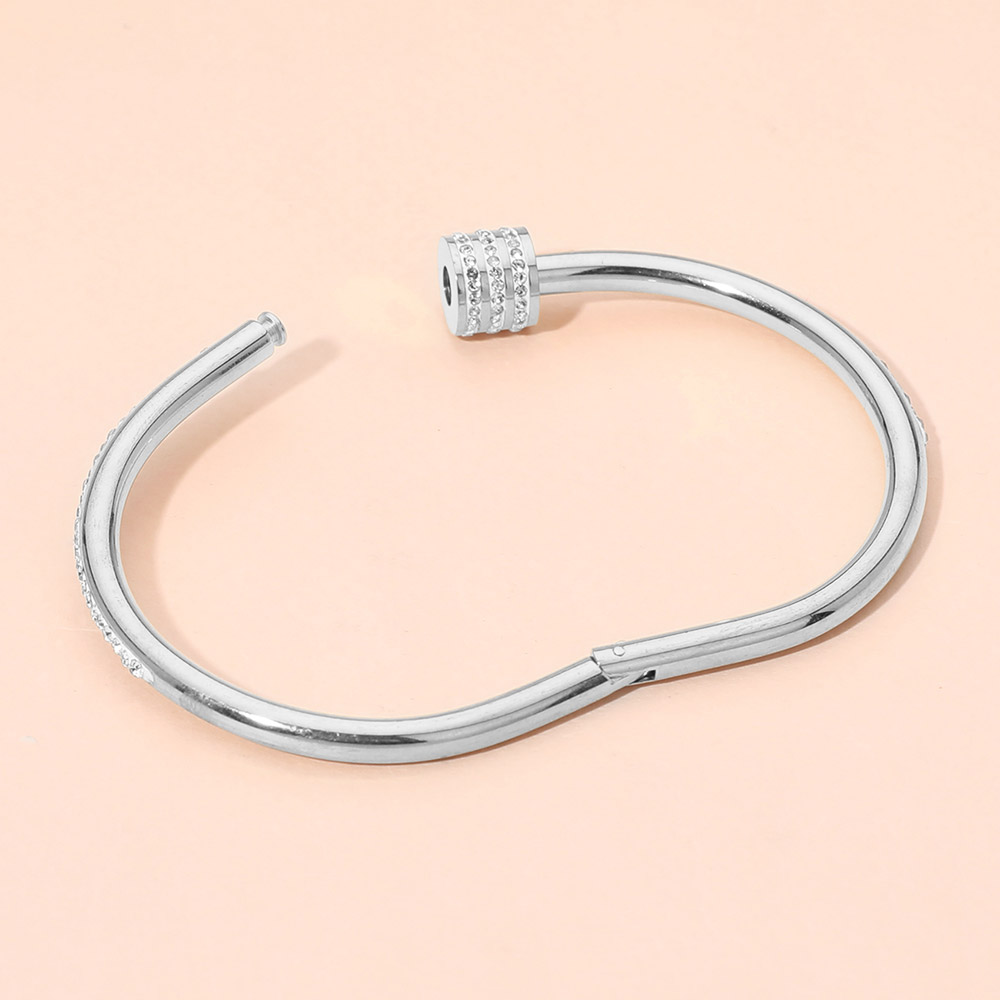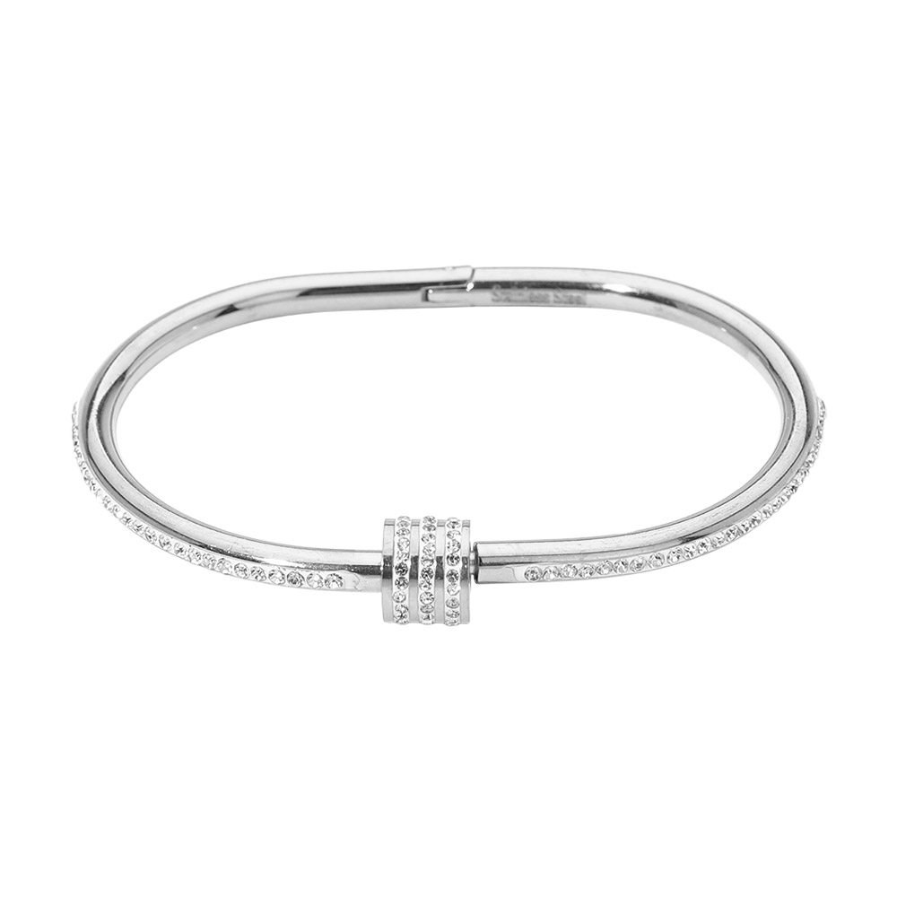 • Modern open hinged bracelet featuring a sleek silhouette and refined crystal detailing for subtle sparkle. Designed to layer effortlessly or wear solo, this versatile bracelet complements casual and elevated looks, making it a timeless choice for curated jewelry collections and gift-ready displays.