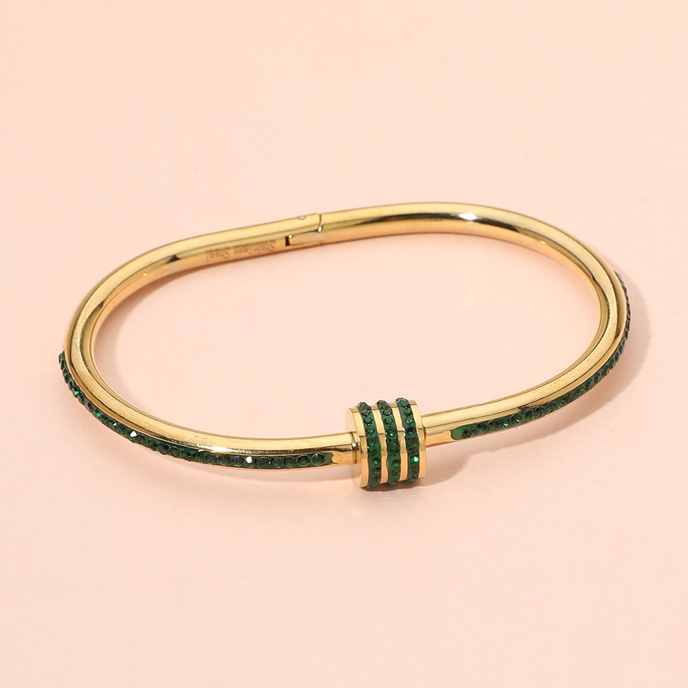 • Modern open hinged bracelet featuring a sleek silhouette and refined crystal detailing for subtle sparkle. Designed to layer effortlessly or wear solo, this versatile bracelet complements casual and elevated looks, making it a timeless choice for curated jewelry collections and gift-ready displays.