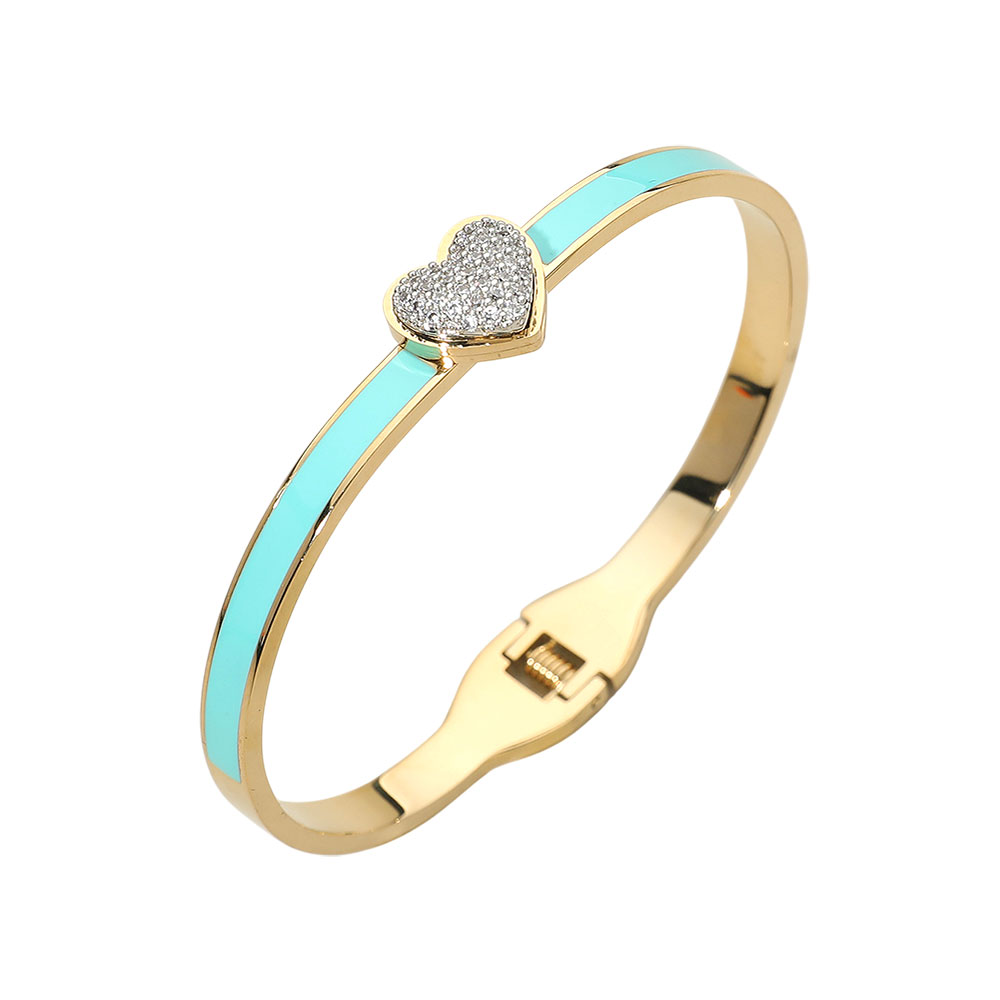 • Sleek hinged bangle bracelet featuring a centered heart accent with shimmering surface detail. Designed for comfortable wear and secure closure, this refined piece layers effortlessly or stands alone for everyday styling and gifting.