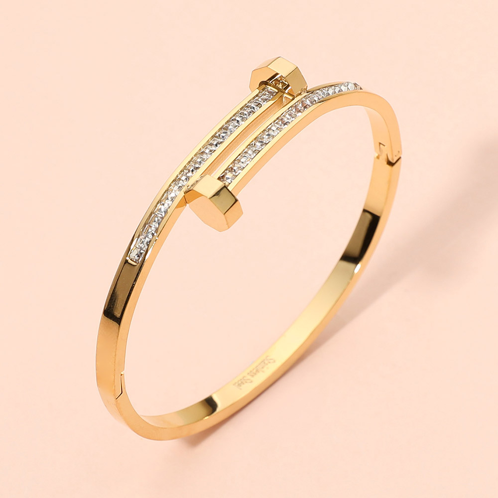 Stainless Steel CZ Stone Paved Nail Head Tip Hinged Bangle Bracelet Stainless Steel CZ Stone Paved Nail Head Tip Hinged Bangle Bracelet Stainless Steel CZ Stone Paved Nail Head Tip Hinged Bangle Bracelet