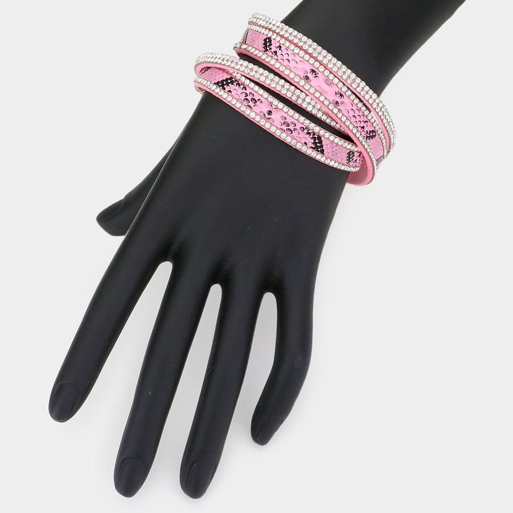 Crystal Pave Faux Leather wrap Bracelet