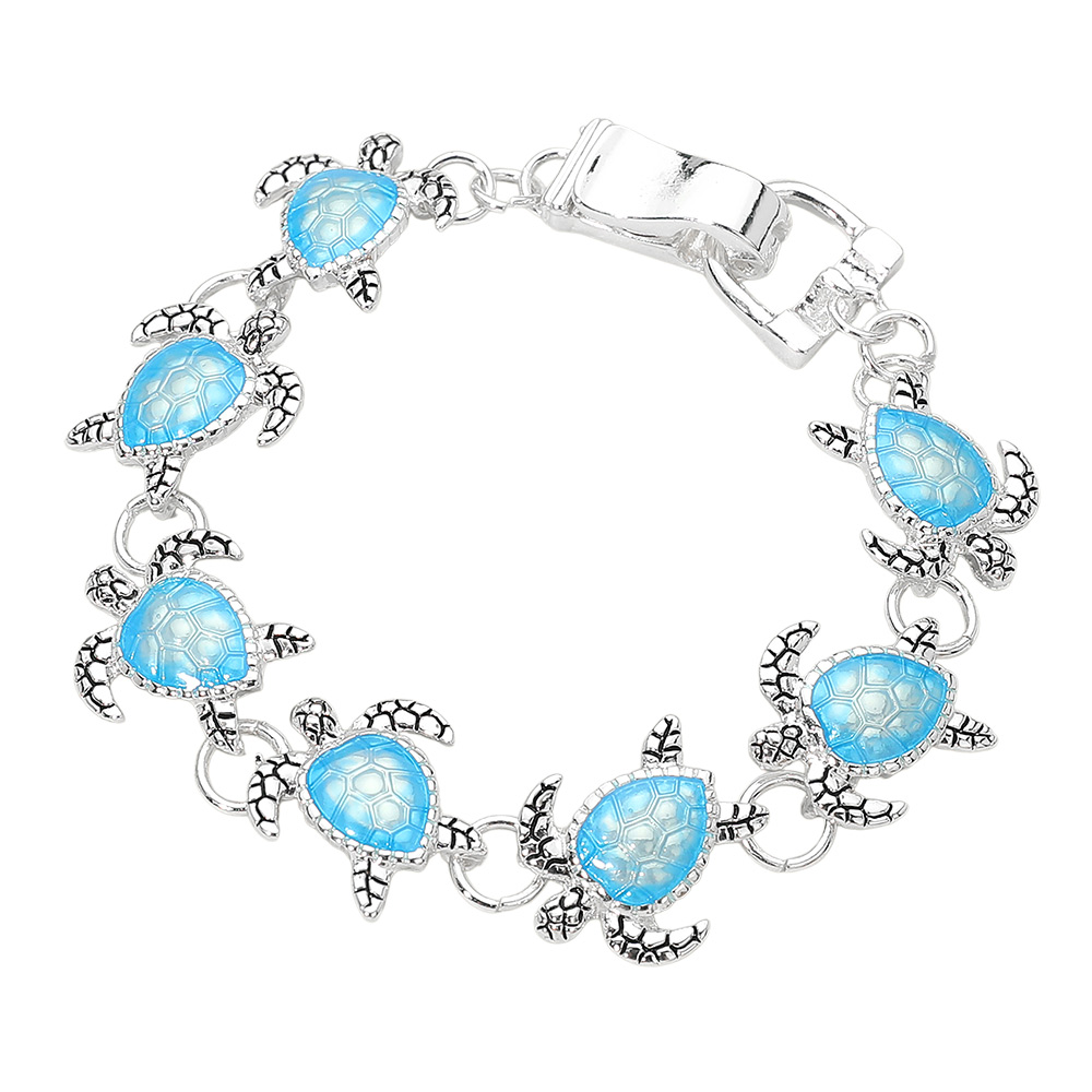 • Playful sea turtle charm bracelet designed with detailed linked motifs and an easy magnetic closure. A fun, ocean-inspired accessory perfect for beach shops, gift boutiques, and seasonal collections, offering effortless wear and standout character appeal.
