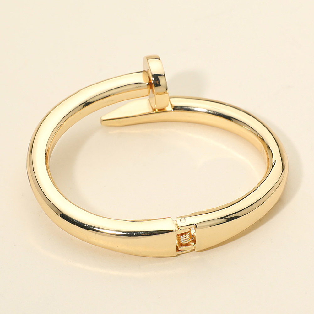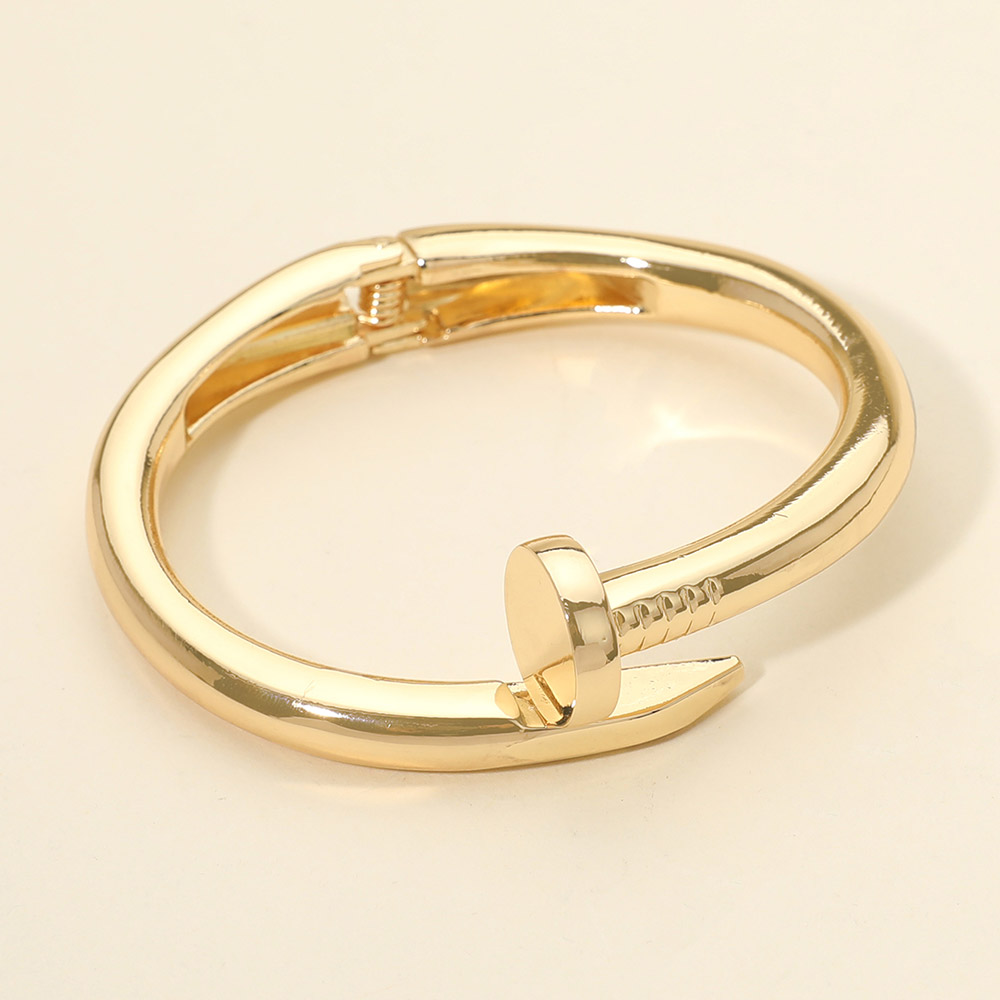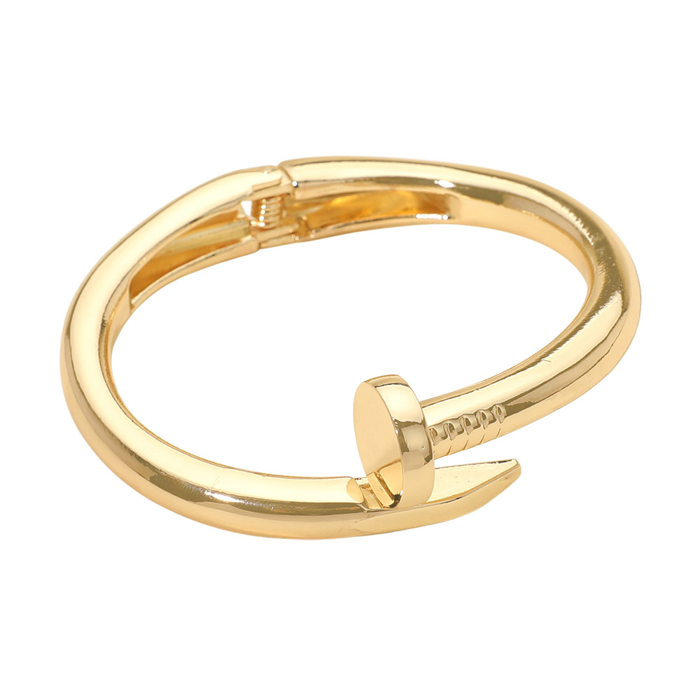 Details • Size : 0.8" H, 2.4" D • Hinged Closure • Statement nail inspired bracelet featuring a sleek open hinge design with sculptural curves. Modern and fashion forward, this bracelet adds an edgy yet refined accent to everyday outfits, workwear styling, and trend driven accessory collections. • Lead and Nickel Compliant