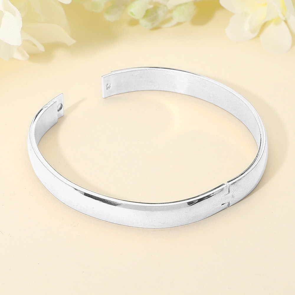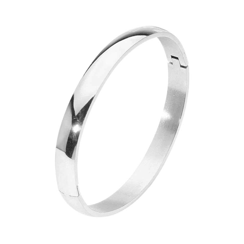 Details • Size : 0.3" H, 2.5" D • Hinged Closure • This stainless steel bangle showcases a minimalist, high-polish finish that exudes timeless sophistication. Its sleek, seamless design offers effortless versatility, perfect for elevating both casual and formal looks with understated elegance and lasting, refined modern appeal. • Stainless Steel