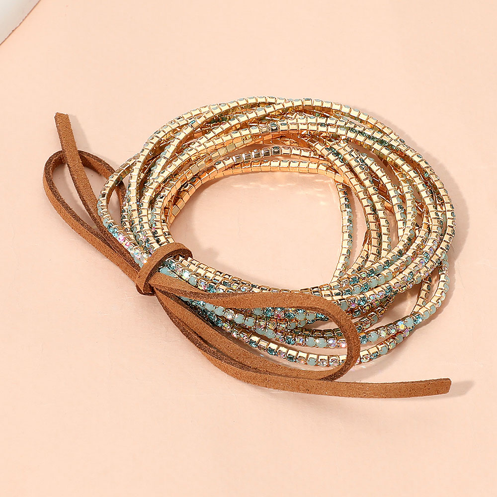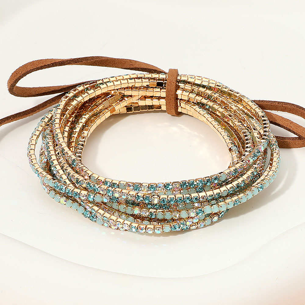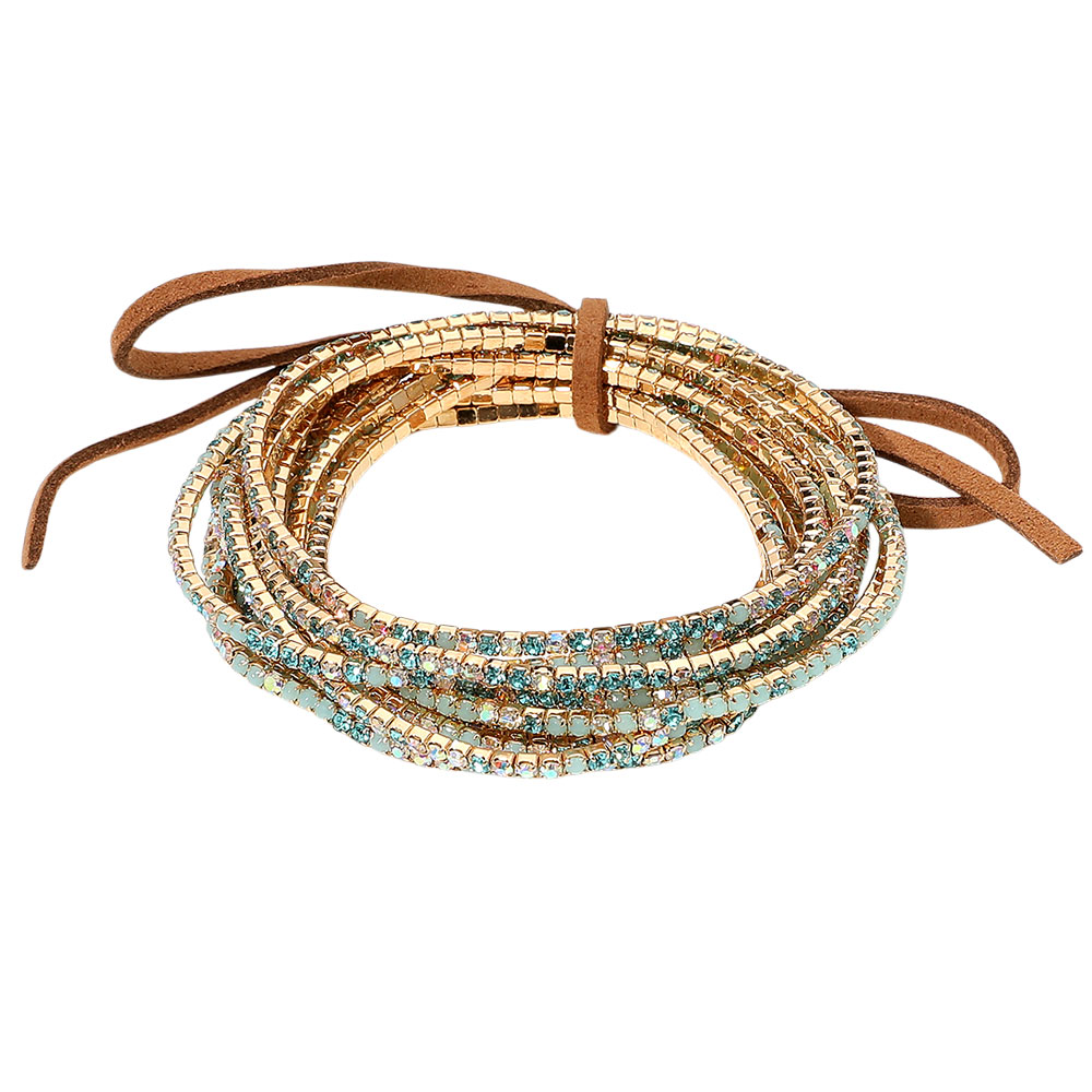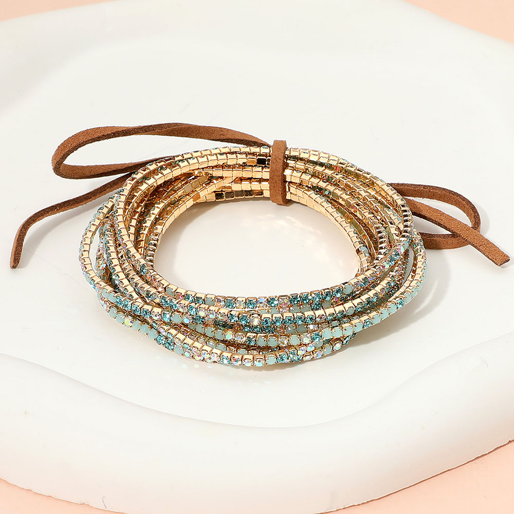 12PCS - Ribbon Colorful Rhinestone Layered Stretch Bracelets