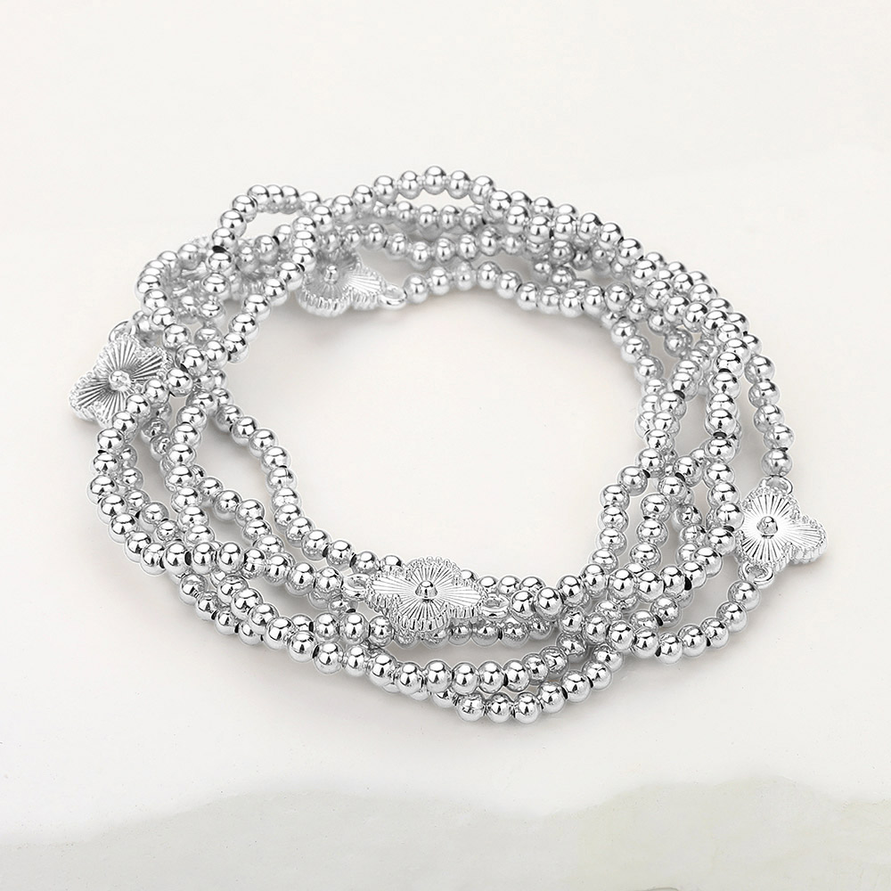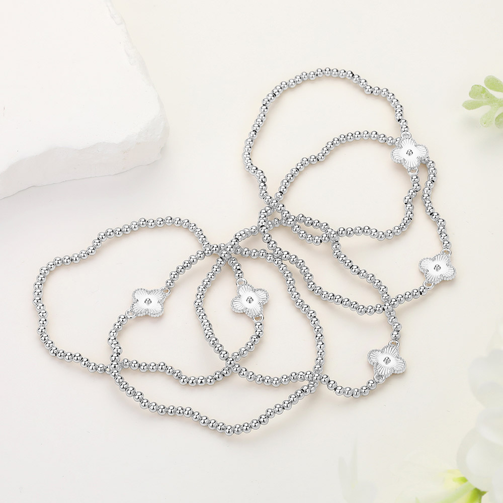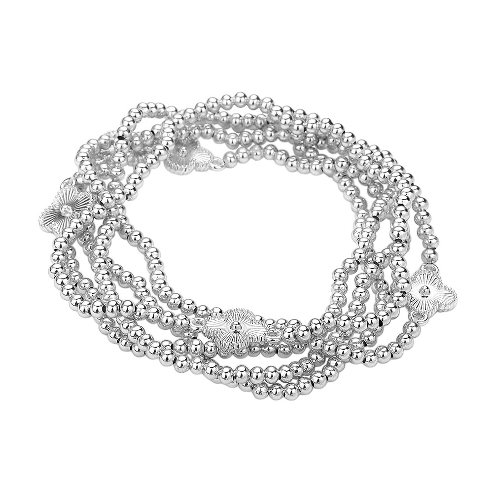 5PCS - Metal Quatrefoil Ball Beaded Stretch Multi Layered Bracelets