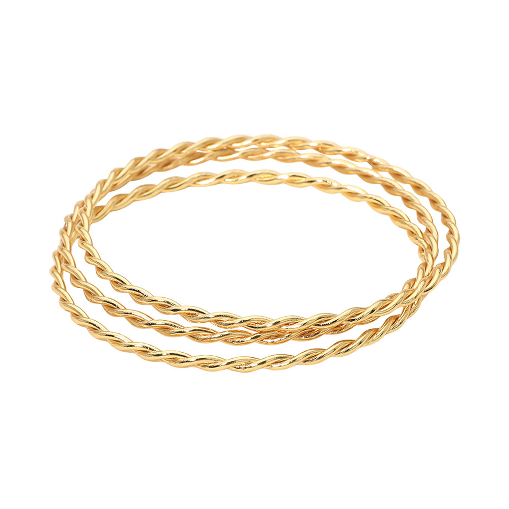 Details • Size : 0.4" H, 2.6" D • Water Resistant • Elegant twisted rope stackable bangle set featuring a timeless circular design that adds texture and movement to wrist styling. Ideal for layering or wearing solo, this versatile bangle set complements casual outfits, office looks, and evening wear with effortless, modern appeal. • Hypoallergenic • Stainless Steel