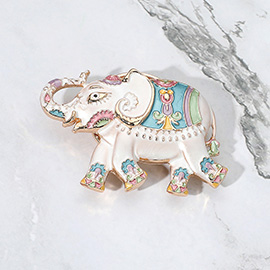 Details • Size : 2.5" X 1.8" • Magnetic Closure • No Pinhole Damage • Elegant elephant brooch showcasing artistic details and ornamental patterns. A unique statement accessory perfect for adding character to any outfit or accessory like bags, scarves, or hats. • Lead and Nickel Compliant
