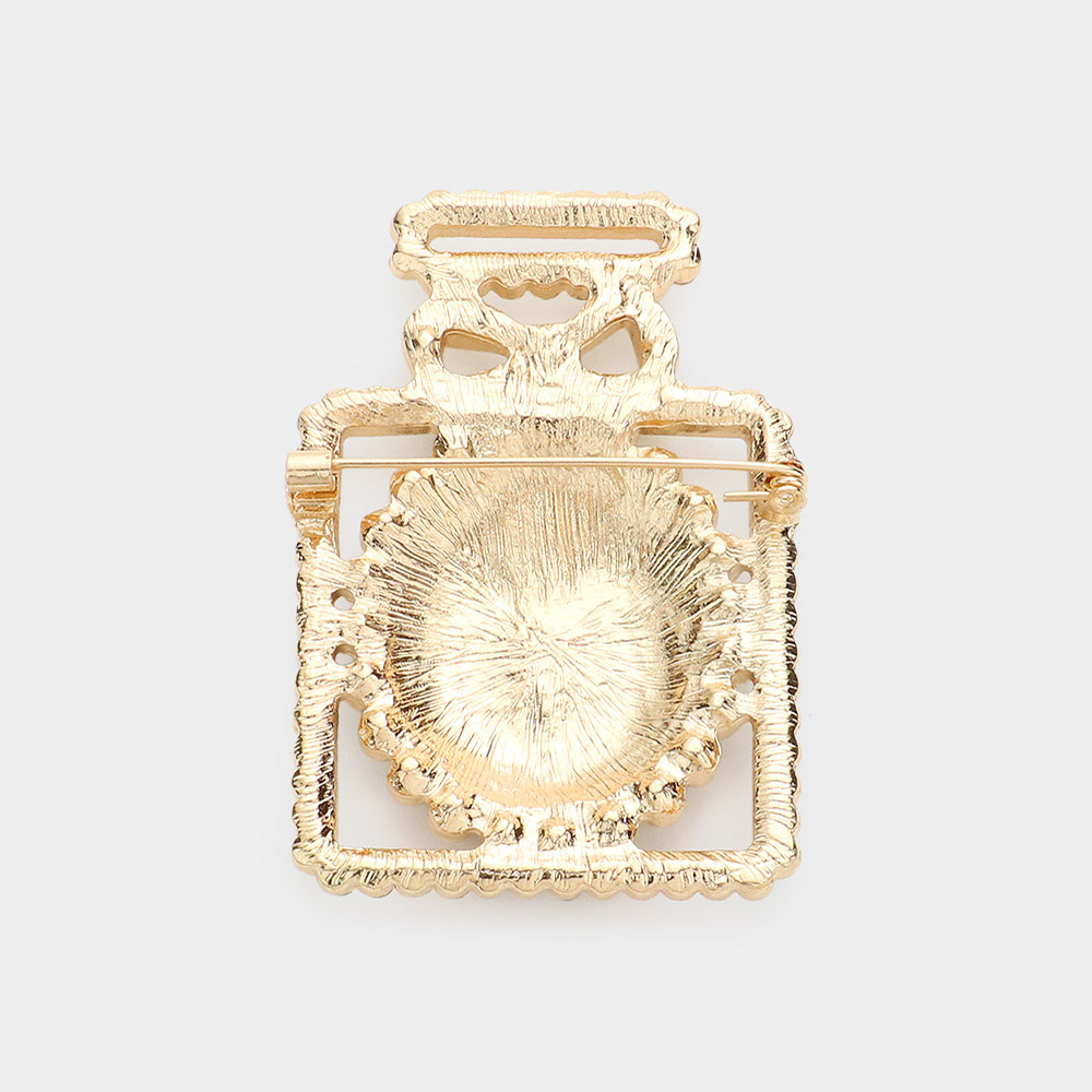 Double Open Circle Link Stone Embellished Perfume Pin Brooch
