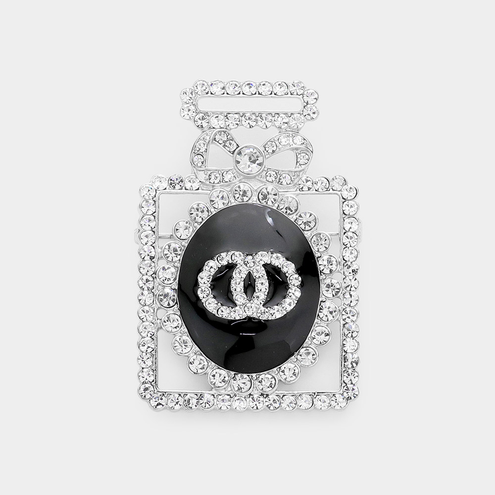 Double Open Circle Link Stone Embellished Perfume Pin Brooch