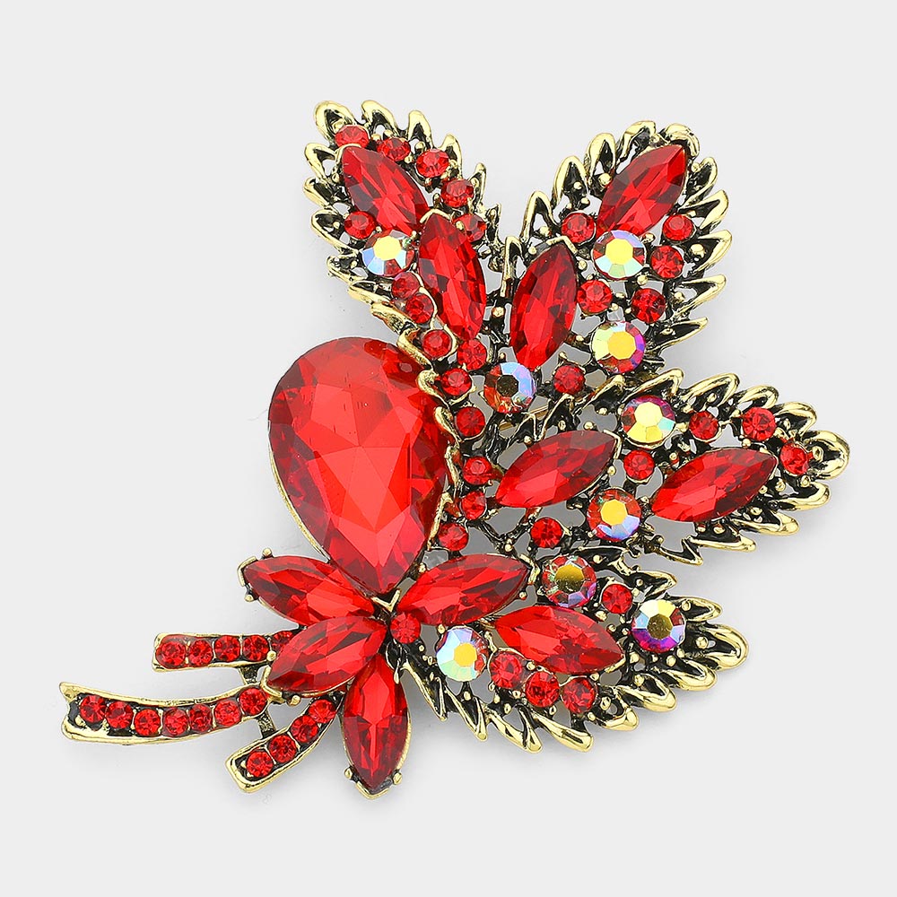 Glass Crystal Leaf Bouquet Brooch Pendant
