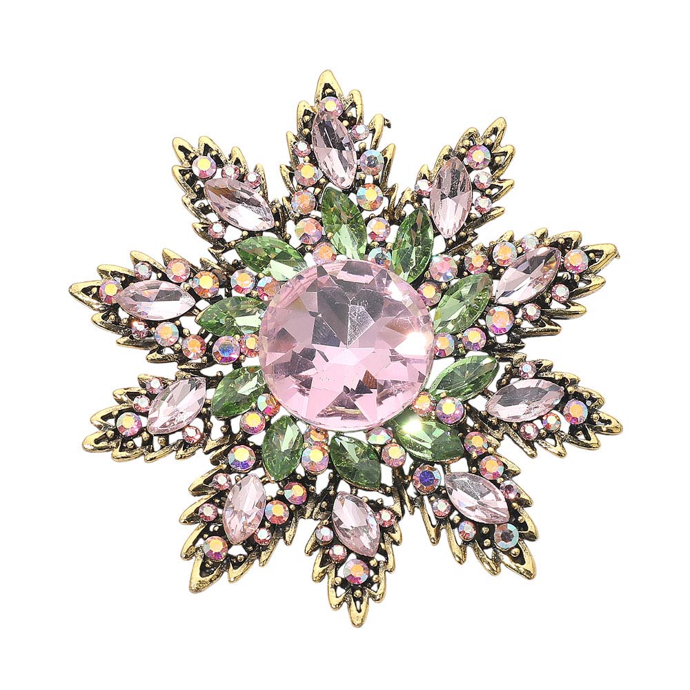Details • Size : 3.3" X 3.5" • Pin Brooch • Make a statement with this crystal floral starburst brooch, featuring a radiant layered design and a brilliant center stone that catches the light beautifully. A versatile accessory for elevating jackets, scarves, handbags, or special occasion looks. • Lead and Nickel Compliant