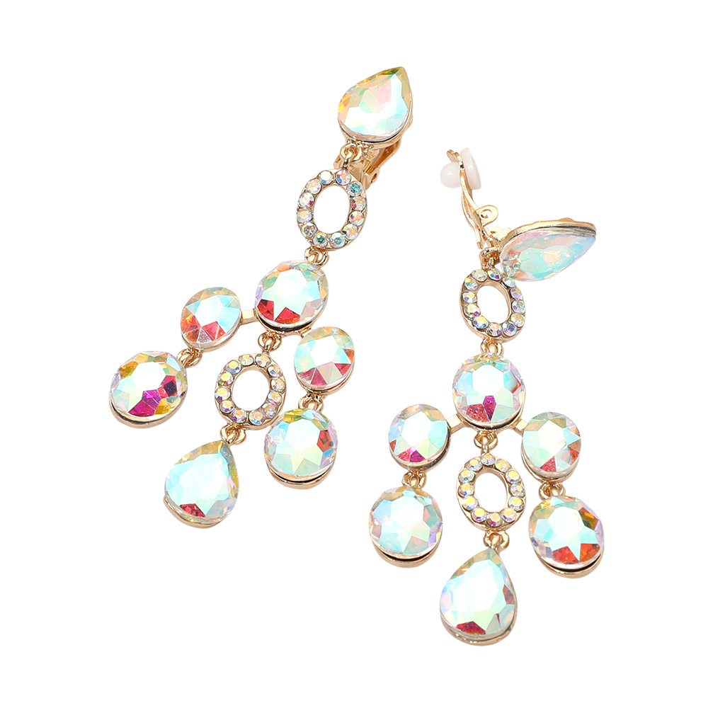 • Statement chandelier earrings featuring cascading faceted accents with a clip-on design for comfortable, secure wear. Ideal for special occasions, evening looks, and boutique collections, offering elegant movement, eye-catching sparkle, and versatile styling appeal without pierced ears.