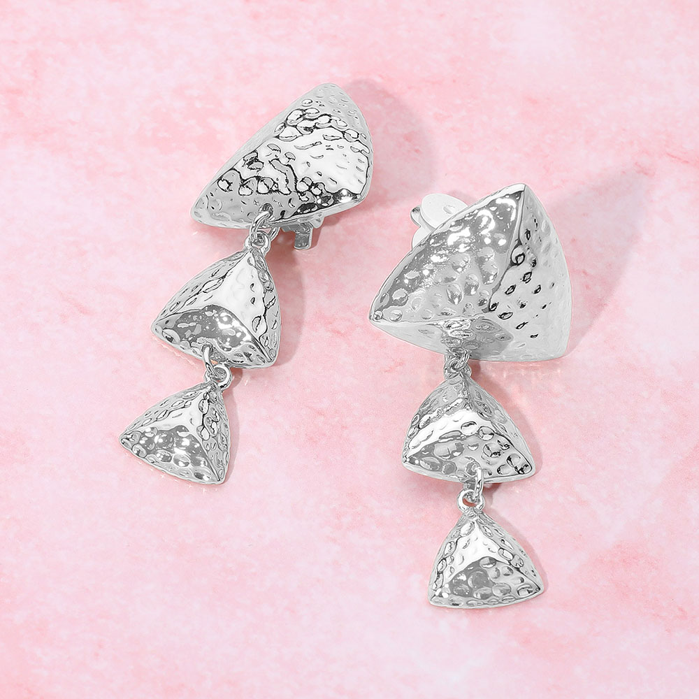 Triple Hammered Metal Triangle Link Drop Clip On Earrings