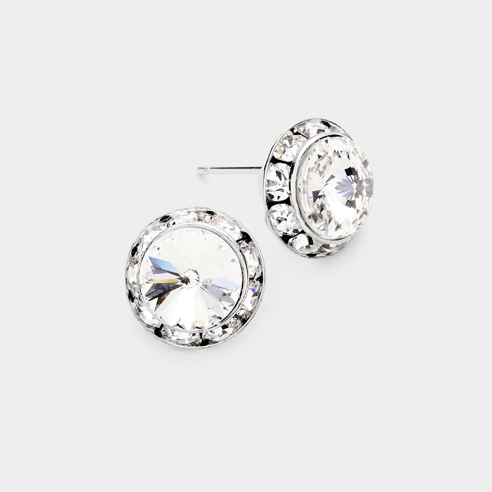 Rivoli Cut Genuine Crystal Round Stud Earrings