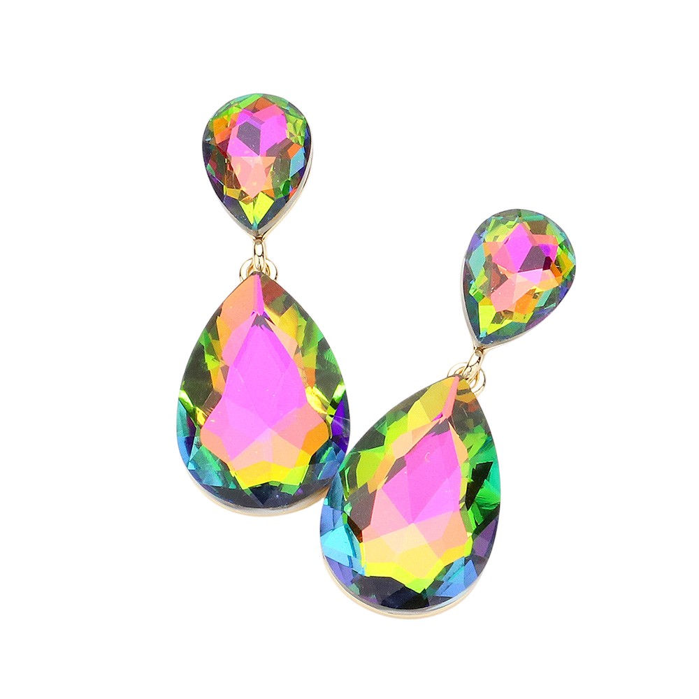 • Glamorous faceted teardrop dangle earrings featuring a radiant crystal-cut design that catches the light beautifully. Lightweight and sophisticated, these statement earrings elevate evening outfits, weddings, or special occasions with timeless elegance and refined sparkle.