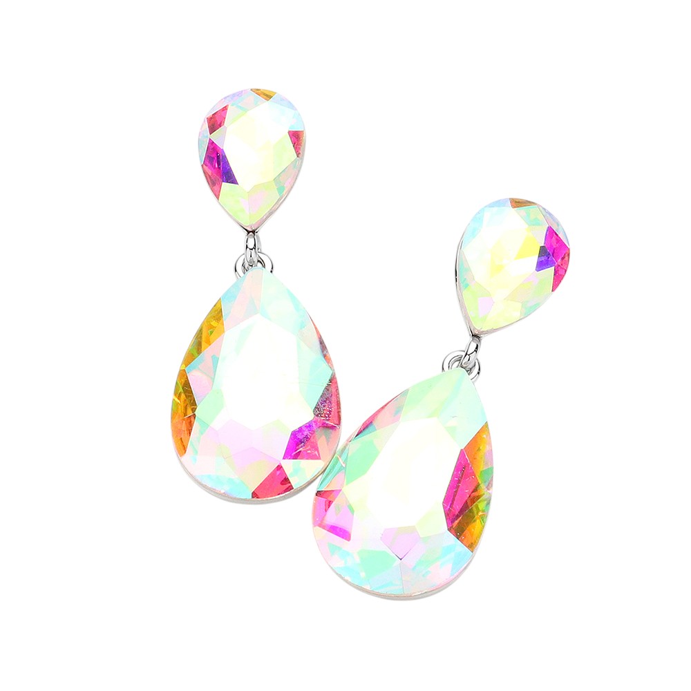 • Glamorous faceted teardrop dangle earrings featuring a radiant crystal-cut design that catches the light beautifully. Lightweight and sophisticated, these statement earrings elevate evening outfits, weddings, or special occasions with timeless elegance and refined sparkle.