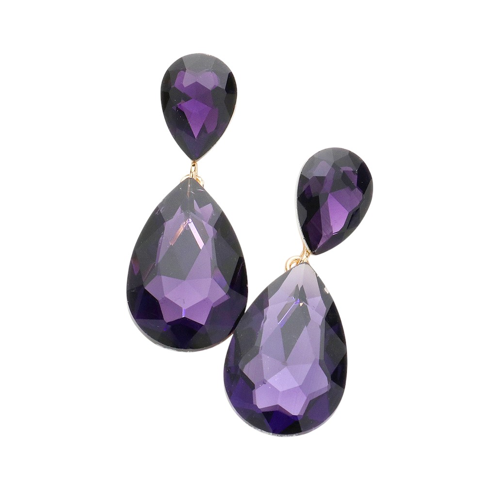 • Glamorous faceted teardrop dangle earrings featuring a radiant crystal-cut design that catches the light beautifully. Lightweight and sophisticated, these statement earrings elevate evening outfits, weddings, or special occasions with timeless elegance and refined sparkle.