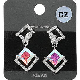 Rhombus CZ Stone Cluster Dangle Butterfly Pointed Evening Earrings