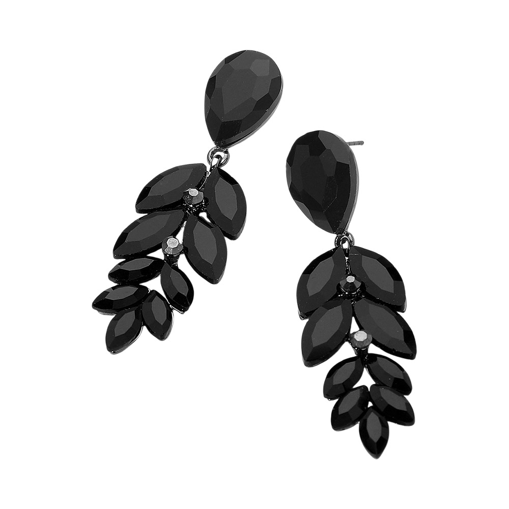 • Elegant drop earrings featuring a teardrop top and cascading marquise-cut stones arranged in a leaf-inspired silhouette. Light-catching and refined, these statement earrings add a glamorous finishing touch to evening outfits or special occasions.