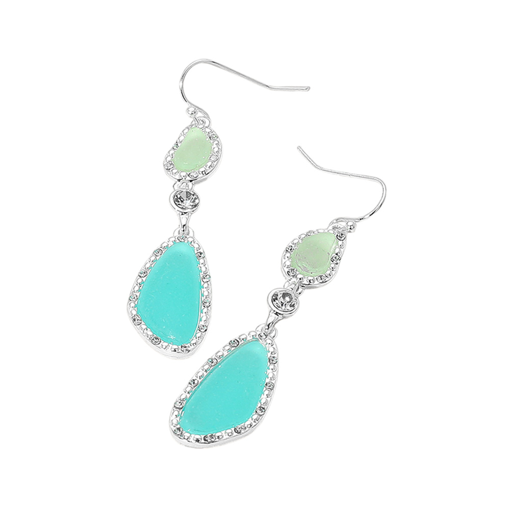 Abstract Sea Glass Link Dropdown Dangle Earrings