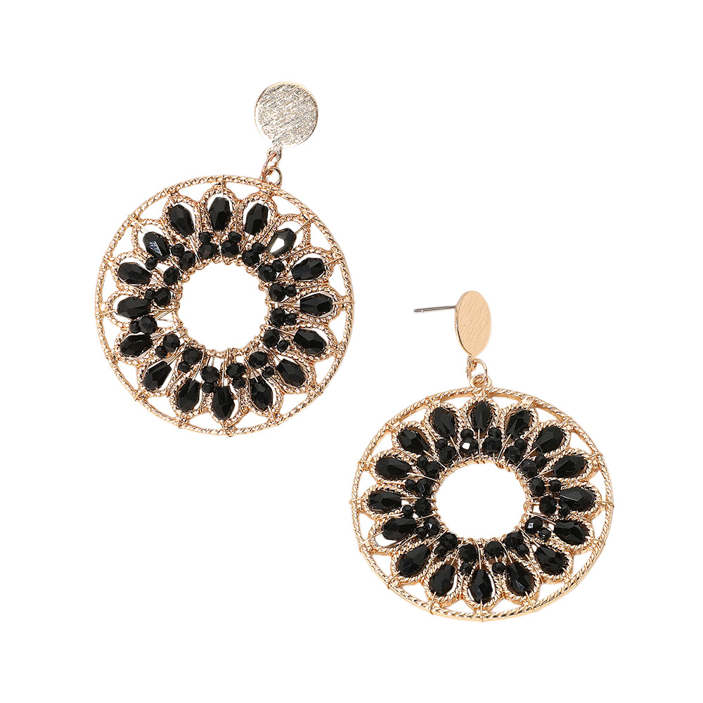 Faceted Beaded Wrapped Disc Dangle Earrings