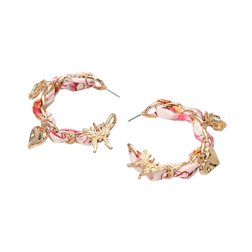 Flower Butterfly Heart Charm Fabric Scarf Hoop Earrings